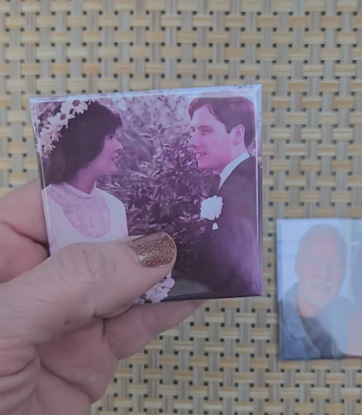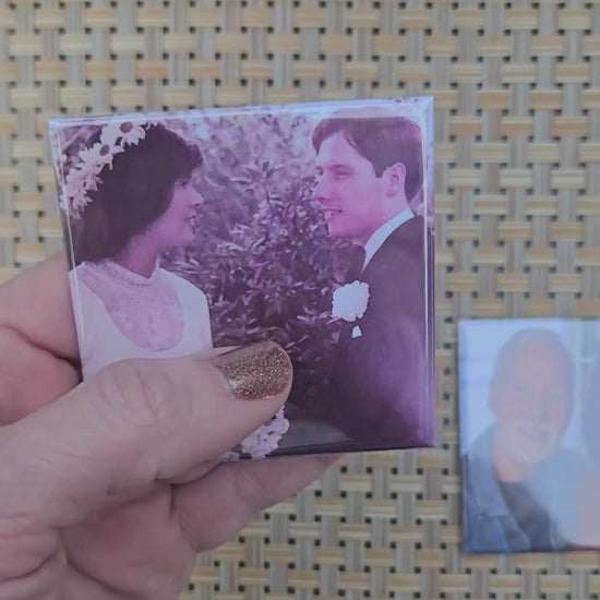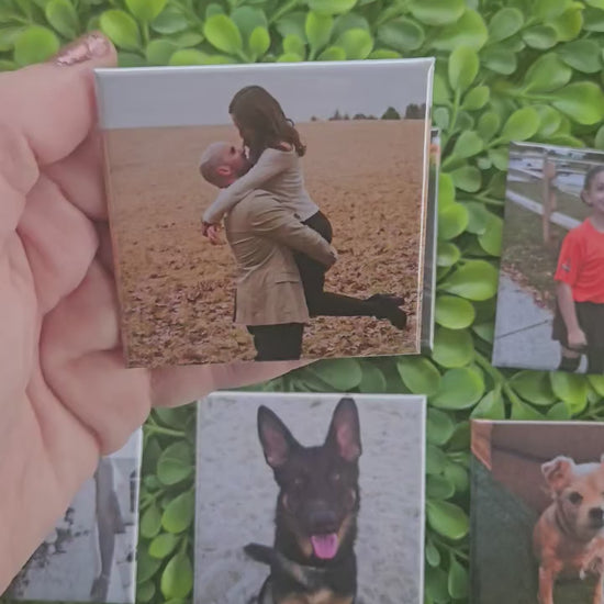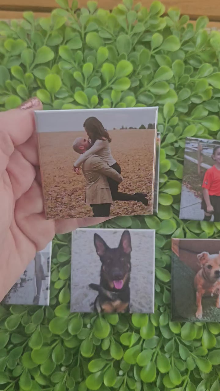 Hard back magnets are 2.5x2.5 inches with a glossy finish. Please move your photos around within the template to ensure the most important part of your photos are centered. Photos print how they are placed in the template and will not be altered in any way. Free local delivery offered at checkout to those within 25 miles of Bold Magnetics.