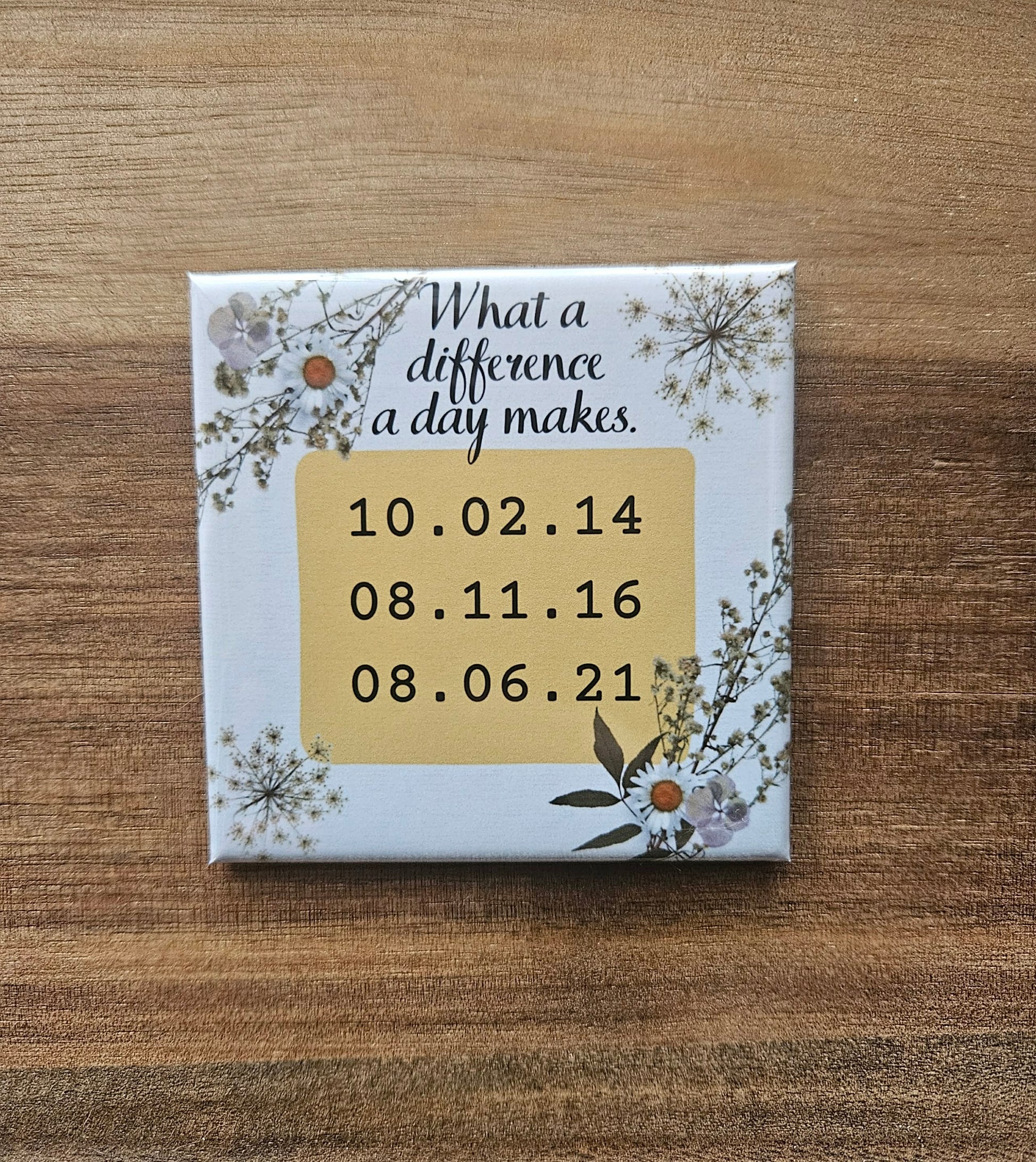 Display this beautiful keepsake magnet to celebrate the days that matter the most. Whether it is the day you became engaged, got married, your child's birthdate, when you earned a promotion, experienced an amazing vacation, or more, this magnet is the perfect way to remind you of these memories every day.