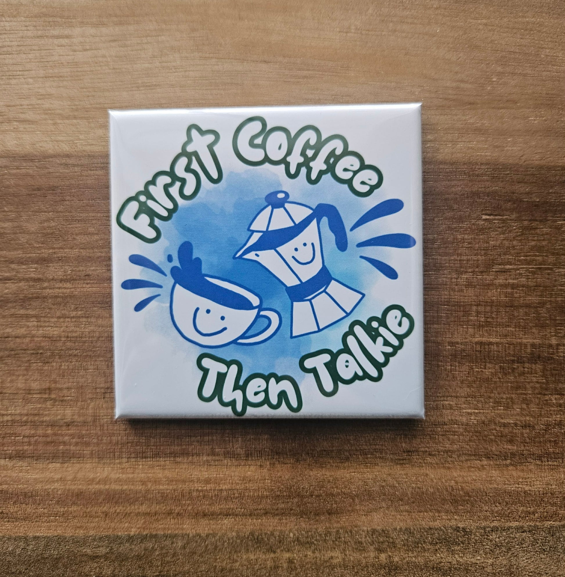 2.5x2.5 inch magnet with a hard back and glossy finish.